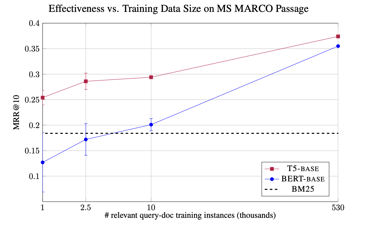 score = softmax(out[true], out[false])monoT5 performs better than monoBERT and duoBERT.